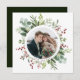 Dieses Weihnachtsfest | Holiday Save the Date Flachkarte mit gemalten Aquarelleukalyptus, grünen Blätter, roten Beeren, Kiefernästen mit kreisförmigem Foto und benutzerdefiniertem Text auf der Rückseite. Für eine erweiterte Anpassung dieses Designs klicken Sie bitte auf den Link "Weitere Anpassung". Matching-Elemente sind ebenfalls verfügbar.