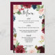 Elegante und moderne romantische Aquarellkarte mit floralen Hochzeitsmenüs mit Bordeaux / Marsala , Rosa, Lila, pfirsichfarben, marineblasblaue Rose mit passendem Blattwerk. Ideal für einen Herbst / Hochzeitsmitte. Weitere passende Designs und Variationen finden Sie in meinem "Blitzweddingpaperie" Shop. Und zögern Sie nicht, mich für weitere Anpassungen oder Matching-Produkte zu kontaktieren