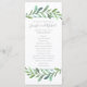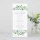 Ein elegantes botanisches Hochzeitsprogramm, umgeben von blauen, grünen Wasserfarben. Die Hintergrundfarbe wird in Weiß angezeigt, kann aber an Ihr Hochzeitstil angepasst werden. Koordiniert perfekt mit unserer modernen Weinkeller Hochzeitskollektion.