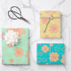 Retro Botanische Muster Wrapping Paper Sheets. Eine niedliche Mischung aus Grün, Gelb und Türkis von Dreaming Cocoon. Vintage Muster orangefarbene Blume mit der sommerlichen Atmosphäre, perfekte Geschenkverpackung für diejenigen, die Blume Liebe und helle Farben!