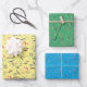 Botanisches Muster, grün-gelb, blaues Packpapier Geschenkpapier Set
