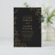 Mit dieser botanischen, schwarzen und goldenen Hochzeitseinladung fügen Sie Ihrem Fest moderne Eleganz hinzu. Dieses Design mit edler Goldtypografie und zarter Vegetation verbindet zeitlosen Luxus mit natürlicher Romantik. Der fett schwarze Hintergrund schafft einen dramatischen, formalen Look, während die botanischen Details eine Bio Touch hinzufügen. Ideal für Hochzeiten in Schwarz-Krawatte, Abend oder Moderne mit eleganter und schicker Ästhetik.