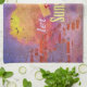 Die Wand, in den Originalwerken von ZoeSPEAK auf diesem inspirierenden Küchentuch, ist eine alte rote Ziegelwand mit einem Wandgemälde auf Stuck, das zerfällt. Das Wandgemälde ist ein Bild von puffigen Wolken im Sonnenuntergang, ganz rosa und hellgelb oben an einem tiefblauen Himmel. Die Botschaft ist, den Sonnenschein lassen.