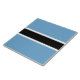 Dieses Design zeigt die Nationalflagge von Botswana (offiziell als Republik Botswana bekannt), einem Binnenland im südlichen Afrika. Botswana grenzt im Süden und Südosten an Südafrika, im Westen und Norden an Namibia und im Nordosten an Simbabwe. Botswanas Grenze mit Sambia im Norden in der Nähe von Kasungula ist schlecht definiert, aber nicht mehr als ein paar hundert Meter lang. Die Hauptstadt Botswana ist Gaborone, die auch die größte Stadt des Landes ist. Weitere wichtige Städte in Botswana sind Francistown, Molepolole, Maun, Mogoditshane, Selibe Phikwe, Serowe, Kanye, Mochudi und Mahalapye.