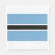 Dieses Design zeigt die Nationalflagge von Botswana (offiziell als Republik Botswana bekannt), einem Binnenland im südlichen Afrika. Botswana grenzt im Süden und Südosten an Südafrika, im Westen und Norden an Namibia und im Nordosten an Simbabwe. Botswanas Grenze mit Sambia im Norden in der Nähe von Kasungula ist schlecht definiert, aber nicht mehr als ein paar hundert Meter lang. Die Hauptstadt Botswana ist Gaborone, die auch die größte Stadt des Landes ist. Weitere wichtige Städte in Botswana sind Francistown, Molepolole, Maun, Mogoditshane, Selibe Phikwe, Serowe, Kanye, Mochudi und Mahalapye.