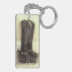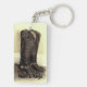 Une vieille paire retirée de bottes de cowboy se dirige vers un porte - clé intéressant de pays. Tout doit se retirer à temps.