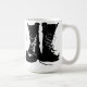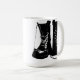 Des bottes de style militaire en noir et blanc. Des tasses à café personnalisées. Idée cadeau.