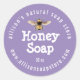 The Bougainvillea Purple Honey Soap Label is a charming round sticker designed for handmade soap makers, bath-and-body boutiques, and small-batch artisans. Featuring a beautifully illustrated honeybee, bold organic lettering, and a soft bougainvillea purple background, this label adds a warm, handcrafted touch to honey soap bars and natural skincare packaging. Customizable shop names, websites, and sizes make it a polished and practical branding choice for makers who want their products to stand out.