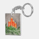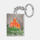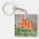Une aquarelle représentant des bougies de Noël et des bougies à feuillage persistant de pin orne ce porte - clé festif !