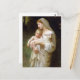 Bouguereau Innocence Postcard. Ölmalerei auf Leinwand aus dem Jahr 1883. William-Adolphe Bougueeau war ein traditionalistischer französischer Maler und Neoklassiker, der oft über mythologische, biblische und literarische Themen zeichnete. Seine Arbeit Unschuld zeigt eine schöne junge Frau, die ein Baby und ein Lamm hält. Die Frau hat hellbraunes Haar und trägt einen weißen, cremefarbenen Schal. Ein süßes und sanftes Aussehen kennzeichnet ihr Beileid, wenn das Baby einschlafen kann. Ein hübsches Geschenk für Fans von Bouguereau, Neoklassizismus, allegorische Malerei, Lämmer und Babys.