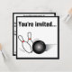 Cet invitation est décoré par une boule et des goupilles de bowling. Pour les articles assortis, dactylographiez le "bowling de penguincornerstore" dans la barre de recherche de Zazzle.