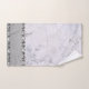 Sur cet élégant ensemble de serviettes se trouve un élégant motif en marbre argenté avec une bordure métallique en argent sur le fond avec des diamants en argent qui bordent la bordure pour plus de glamour. Vibes chic glam pour égayer n'importe quel décor de salle de bain.