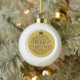 Découvrir les halls avec le Simple Black sur Gold Joyeux Noël en céramique Ball Ornement de Noël. Cet élégant ornement présente un design élégant en bauble noir à l'avant et un charmant sapin de Noël à l'arrière, ajoutant une touche de charme festif à votre arbre. Fait de céramique durable, il s'ajoute à votre décor de vacances année après année.