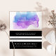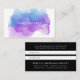 Encouragez vos clients et vos clients à partager l'amour avec ces cartes de visite chics de référence en aquarelle. Avant dispose d'une seule ligne de texte personnalisé sur une toile d'aquarelle en arrière-plan, dans les tons oculaires bleu indigo et violet violet. Ajoutez vos informations de contact et vos conditions de référence au verso à l'aide des champs modèle fournis. Inclut l'espace pour les noms du référent et du nouveau client.