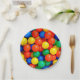 Bouncy Balls Ball Pit Thema Birthday Party blau, rot, grün, orange und gelb Papier Teller.
