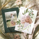 Élégante carte de vœux photo pour les photos verticales avec votre photo entourée d'une bordure géométrique de feuillage botanique vert luxuriant et de minuscules baies de houx à l'aquarelle rouge. "Le ciel et la nature chantent" apparaît dans le coin supérieur gauche en lettrage gris, avec le nom de votre famille en bas à droite. Personnalisez le dos avec deux photos supplémentaires et un message personnel.