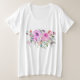 Un joli bouquet de roses et plus dans les tons rose, lavande, violet, pêche, aqua, turquoise, prune et plus ornent ce t-shirt féminin.