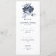 Cette carte de menu mariage simple et élégante présente des fleurs et des feuilles bleus et épais et poussiéreux. Nous avons utilisé l'art via LABFcreations.