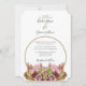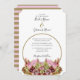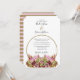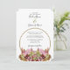 Ce design présente un bouquet de fleurs sauvages rustique. Un simple cadre en cercle doré encercle le texte tandis que les noms de la mariée et du marié sont positionnés au-dessus. Les tons floraux roses rustiques viennent compléter la verdure des feuille. Les tons dorés cravate tout ensemble pour créer une atmosphère rustique de jardin boisé de campagne. Des rayures dorées et roses recouvrent l'arrière du design. Design élégant d'invitation de mariage avec des éléments modernes. Des articles de papeterie mariage correspondants et d'autres formats d'invitation de mariage sont également disponibles.