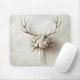 Impastoische Kunst eines rosa-weißen Rosenbukets mit Elfenbeinband und Hirschgeweih auf einem texturierten Elfenbeinhintergrund.