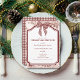 Donnez le ton pour un rendez-vous chaleureux et élégant avec cette invitation pour le brunch de Noël. Un arrière - plan français de toile bordeaux intemporel est jumelé à un panneau central crème encadré, parfait pour vos détails de fête dans les polices élégantes Lucia et Playfair. Un arc en vichy charmant ajoute une douce touche saisonnière, tandis que le dos est doté d'un motif bordeaux en vichy coordonné. Idéal pour les brunchs festifs, les petits déjeuners de vacances ou les fêtes de Noël en famille et entre amis.