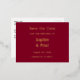 Burgundy Enregistrer la date Foil Invitation Postcard, s'il vous plaît personnaliser l'avant et l'arrière de la carte postale en utilisant le modèle de personnalisation en ligne avant de commander. L'avant de la carte postale présente un véritable texte métallique sur un arrière - plan de couleur bordeaux, tandis que l'arrière de la carte postale est revêtu d'encre noire sur un arrière - plan blanc. Si vous souhaitez modifier la mise en page ou customiser la conception d'un type d'événement autre qu'un mariage, faites défiler le modèle de personnalisation et cliquez sur l'option "Modifier en utilisant l'outil de conception" pour "Customiser plus loin".