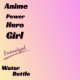 Votre Anime Power Hero Girl va adorer cette bouteille d'eau personnalisée. "POWER" est imprimé verticalement sur le dos (il est modifiable si vous préférez changer de mot mais doit être le même nombre de lettres). Le mignon est rose pastel, violet, jaune, oranges et blues. Parfait pour correspondre sa lunchbox et son étiquette de sac (dans la même collection).