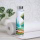 Disque bouteille d'eau de golf avec une vibes de jeu cool pixel art disque d'or parcours dans les tons bleu et vert.