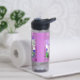Bouteille d'eau avec jeune fille tendance aux cheveux roses.