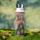 Bouteille d'eau avec tulipes roses peintes par ordinateur. Le nom sur la bouteille peut être changé, ou retiré.
