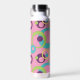 Un arrière - plan rose vif est décoré d'un motif funky de cercles, de points et d'anneaux dans une variété de couleurs vives, dont le bleu, le vert, le violet et le jaune.