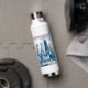 Bouteille d'eau de Chicago avec vue sur la ville de Chicago, Illinois et skyline. Couleurs bleues. Design moderne. Texte personnalisé sur la bouteille d'eau. Modifiez le texte ou laissez-le tel quel. Utilisez le modèle pour créer votre propre bouteille d'eau de la ligne d'horizon de Chicago.