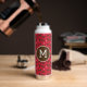 Laboratoires de chocolat avec Bandannas Bleues sur une bouteille d'eau arrière - plan rouge. Ajoutez une initiale pour monographier le cercle à l'intérieur de ce motif.
