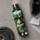 Illustration de Bigfoot dans une double exposition cool avec la forêt, la rivière et les montagnes. Bouteille d'eau à thème cool Sasquatch.
