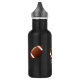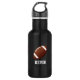 Grande bouteille d'eau noire, avec des graphismes de balles brune et blanche, au milieu. Personnalisez le texte, sur le devant, est prêt à personnaliser pour vous-même ou pour votre fan ou joueur de football favori.