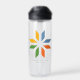 Une bouteille d'eau de haute qualité avec le logo de United Women in Faith et la ligne d'étiquettes : nous croyons que l'amour dans l'action peut changer le monde.