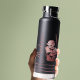 Elégant Baseball Personnalisé Script Nom Bouteille d'eau. Un cadeau parfait pour un joueur de baseball dans la maison. La conception a un arrière - plan noir avec le nom écrit dans une jolie police de script avec une illustration de silhouette de joueur de baseball. Customisez ces jolies bouteilles d'eau en changeant le nom. Pour toute personnalisation supplémentaire comme changement de couleur etc, n'hésitez pas à me contacter à mypaperlove2021@gmail.com