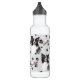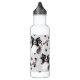 Cette bouteille d'eau présente un portrait d'artiste d'un beau chien Collie Bordure noir et blanc. L'image est répétée autour du périmètre de la bouteille et placée sur un arrière - plan gris pâle saupoudrée d'empreintes de pattes noirs et d'os blancs. Votre nom ou autre texte en rouge marron est également répété autour du périmètre.