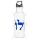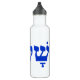 Shalom, hébreu pour la "paix", en bleu sur une bouteille d'eau blanche.
