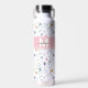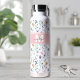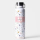 Personalized Elegant Wildflower Monogram Water Bottle. Add a soft, colorful touch to your daily routine with this elegant design featuring a delicate wildflower pattern in pastel shades of pink, purple, blue, yellow, and green on a white background. A pink bar stretches across with a white and gray monogram displayed on two sides for a graceful, personalized accent. All colors can be changed to match your style. Perfect for weddings, housewarmings, birthdays, or everyday use, this floral water bottle brings a fresh, timeless look to any setting.