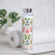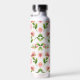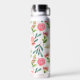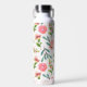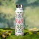 Cette bouteille d'eau a un arrière - plan blanc aux fleurs roses.