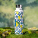This unique water bottle features a Mediterranean-style pattern of French country tiles and lemons. The monogram and name are easily personalized.