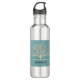 Bouteille d'eau personnalisée avec un arrière - plan vert muet superposé est un arbre jaune clair avec 2 silhouettes d'oiseau orange sur les branches.