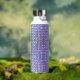 Une bouteille d'eau 2 design géométrique, dorée, bleue et violette irisée.