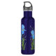 Une bouteille d'eau avec une image de belles fleurs d'iris bleu. Oeuvre originale de W.B.