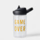 Ce graphique capture avec audace l'expression "GAME OVER" mise sur un arrière - plan bleu vibrant, entrelacé avec un design abstrait, inspiré de circuits imprimés en blanc. Les lettres jaunes, à contraste élevé, attirent l'attention, tandis que les lignes de circuits complexes évoquent l'essence de la technologie numérique et du jeu. Cette interaction visuelle entre le texte et les circuits ne séduit pas seulement les joueurs mais symbolise aussi de façon créative la fin d'un voyage ou d'un jeu numérique. Cette image serait parfaite pour le contenu, l'habillement, ou même comme une affiche élégante pour une salle de jeux.