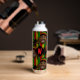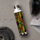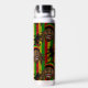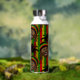 Reggae themed water bottle patterned front and back with a cute Rasta man character, over red, yellow and green stripes. On the front is a monogram diamond area where you can add your own initial