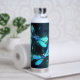 Deux libellules transparentes, lumineuses, turquoise, artistiquement dessinées sur l'arrière - plan de nuit avec des algues luminescentes et des lucioles. libellule éclatante.