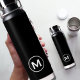 Ce design moderne de bouteille d'eau dispose d'un riche arrière - plan noir, avec votre initiale monogramme en texte blanc gras pour un look simple et élégant, mais professionnel.