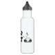 Trois adorables petits pandas assis les uns à côté des autres. Un heureux panda porte un tee - shirt avec "I heart panda" écrit dessus. Un autre propose un bâton de bambou vert à un troisième panda qui s'est endormi.